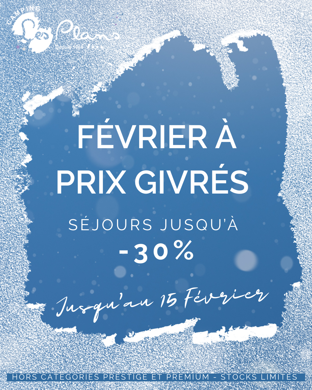 ACTUALITÉS CAMPING GARDFévrier à prix givréJusqu’au 15 Février, profitez des prix givrés au Camping Les Plans pour un séjour jusqu’à -30%Lire l’info