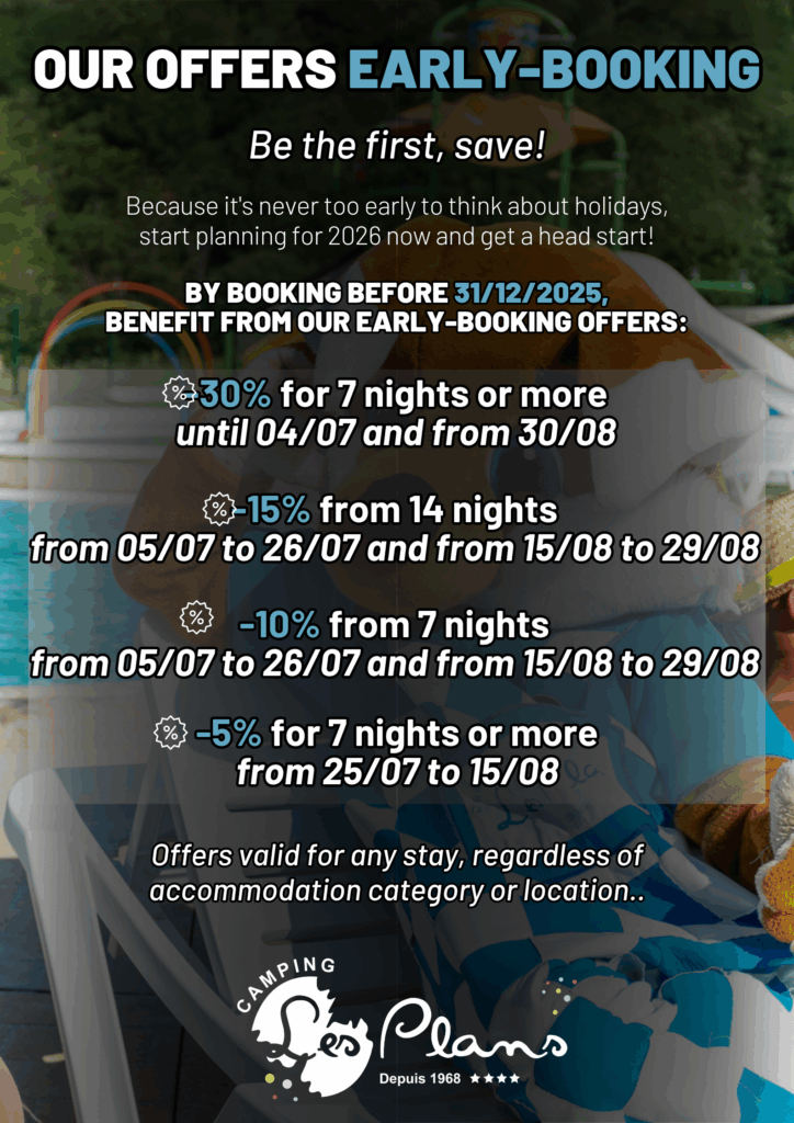 By booking before the 31.12.2025, benefit from our EARLY BOOKING offer: