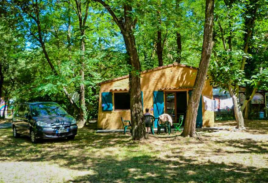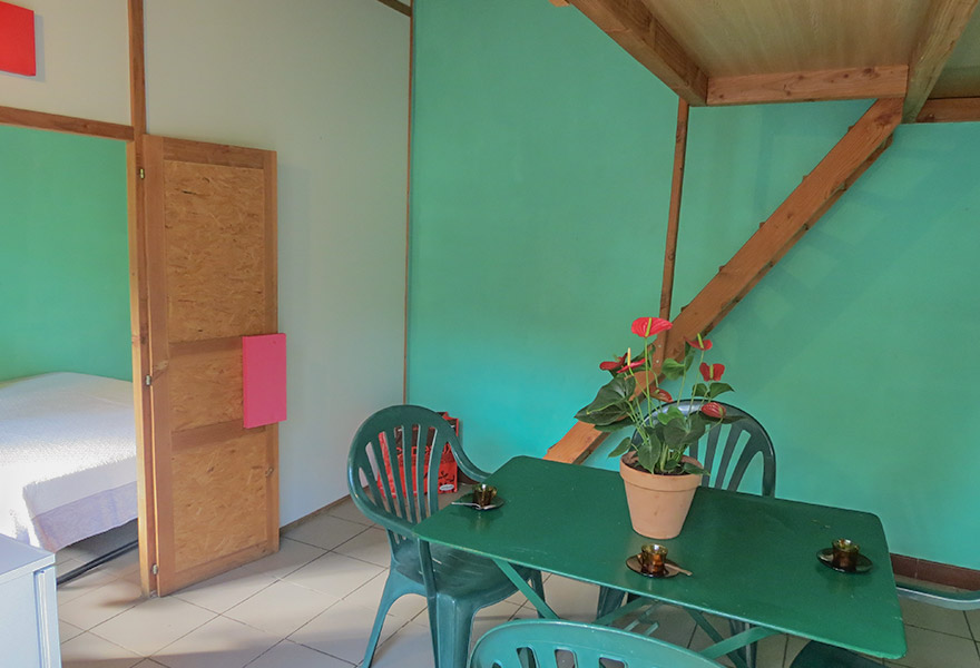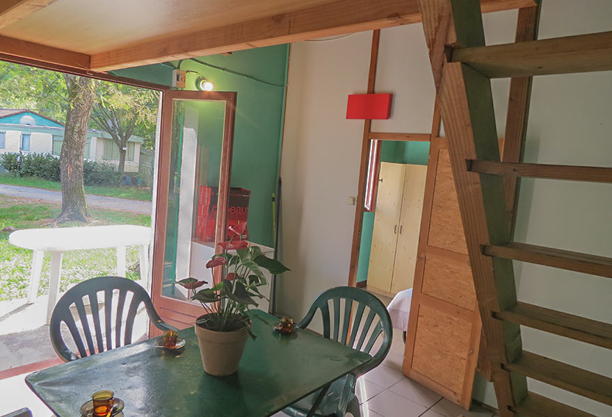 Le bungalow mezzanine est une maisonnette en dur comportant une chambre avec un lit double, une mezzanine avec 3 lits simples et un coin cuisine. Une terrasse avec salon de jardin vous permettra de profiter des longues et belles soirées d'été. Locatif sans sanitaire.